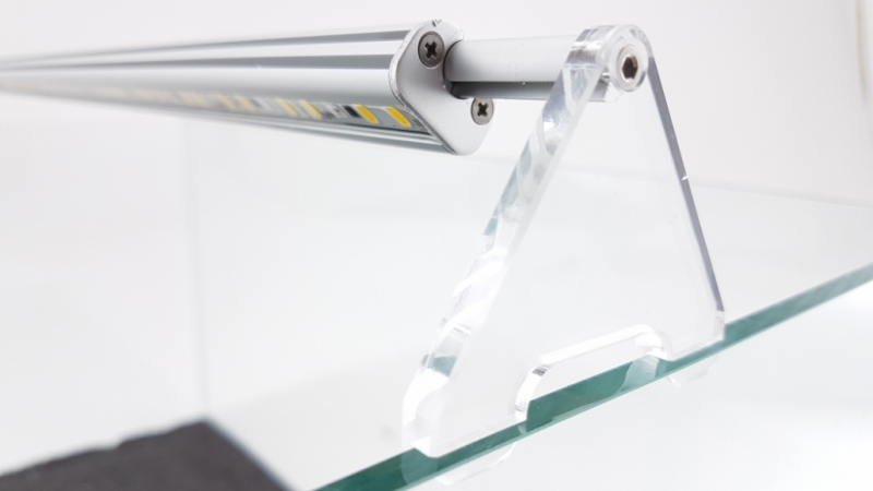 Mit den beiliegenden Edelstahlschrauben wird das Set mit dem onex® Inline-Adapter-System verbunden. Die Breite kann exakt auf die Aquariumlänge angepasst und fixiert werden. Der Lichtaustritt der onex befindet sich mit diesem Adapter-Set ca. 30 mm über dem Aquariumrand.